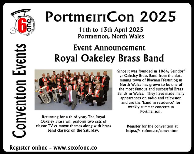 Conventions are self-financing and the organisation, preparation, setting up and running of the event each year is done on a voluntary basis, provided by a dedicated group of people. Conventions are for members and are always promoted and run in a very friendly atmosphere. Six of One would like to thank Portmeirion and all their staff for all of their support and the continued success of Portmeiricon.
